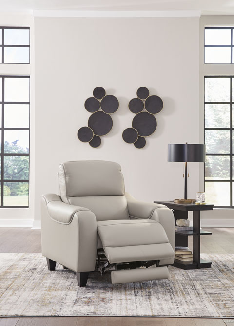 This power recliner puts a sleek twist on laid-back living. It satisfies your desire for comfort without being bulky in design, thanks to subtly incorporated one-touch reclining and adjustable headrests. With chic exposed legs and stunning stitching details elevating the look from the bottom up, this recliner strikes the perfect balance between practical and posh.